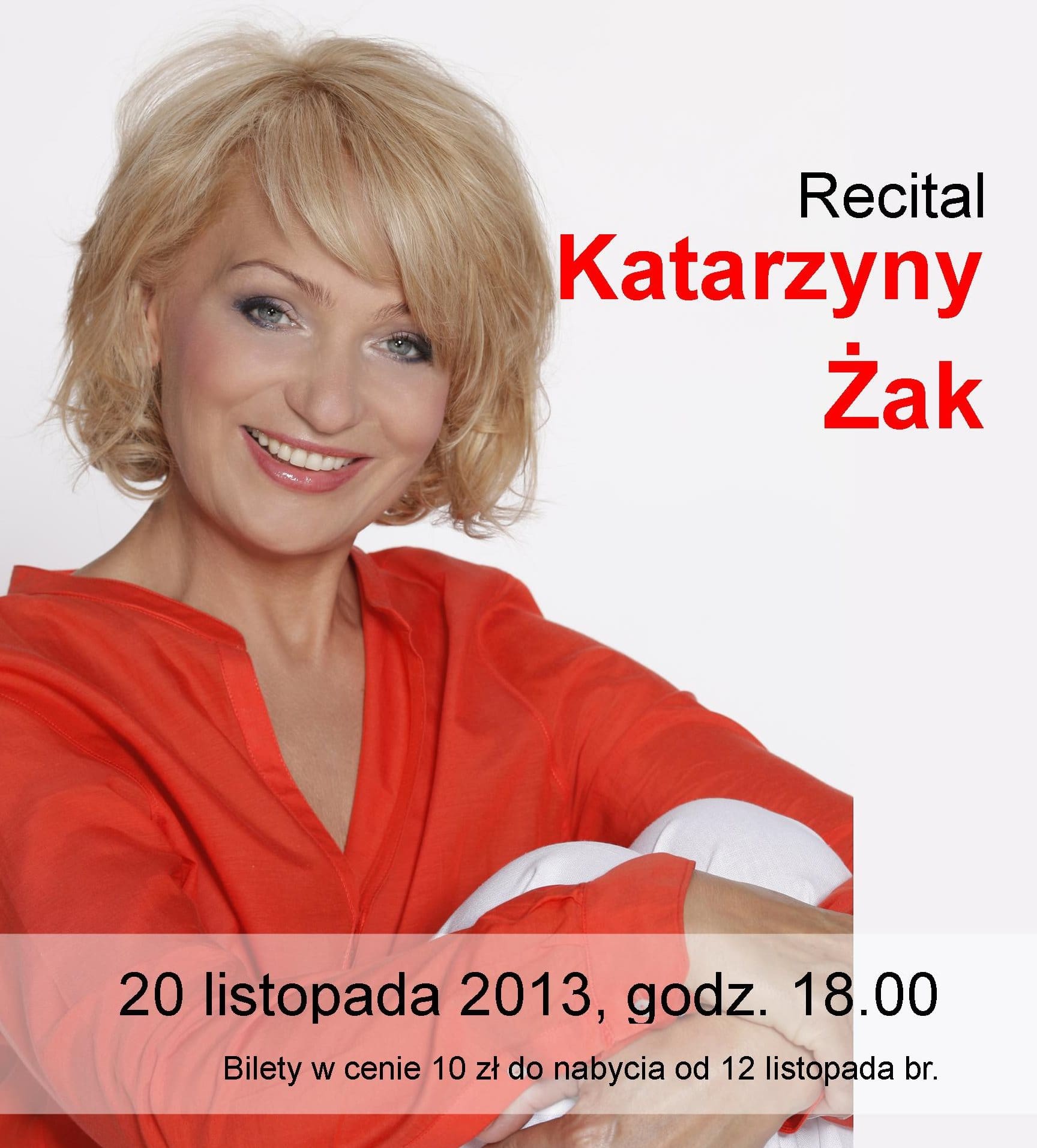 Miejski Ośrodek Kultury w Ozorkowie zaprasza na recital Katarzyny Żak, który odbędzie się 20 listopada 2013 r. o godzinie 18:00. Podczas koncertu usłyszymy przygotowane przez artystkę piosenki Wojciecha Młynarskiego, Agnieszki Osieckiej, Jana Jakuba Należytego oraz pełne pozytywnej energii, zachęcające do refleksji opowieści i anegdoty.