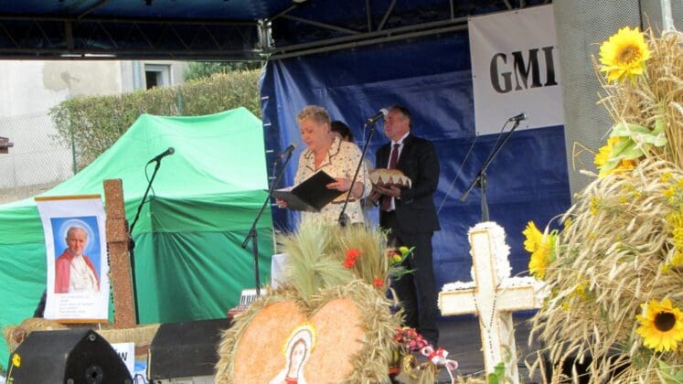 Po części oficjalnej w której wręczono odznaki „Zasłużony dla Rolnictwa” i „Zasłużony dla Gminy Ozorków” rozpoczęła się cześć obrzędowa dożynek.