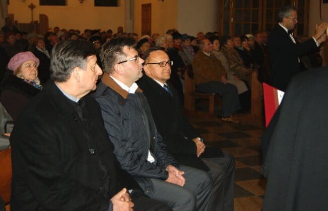 Licznie zebrani w kościele mieszkańcy, wśród nich burmistrz Jacek Socha, wysłuchali znanych pieśni, tj. ?Maszerują Strzelcy?, ?Ostatni Mazur?, ?Ej dziewczyno, ej niebogo? i wieli innych.