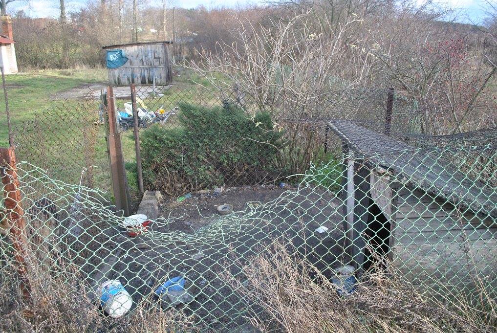 Pies nie miał nawet szans swobodnie się położyć o schowaniu do budy nie było mowy. W pobliżu kilka zardzewiałych naczyń bez wody i pożywienia.