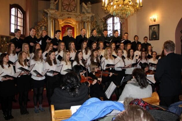 W imieniu organizatorów – Gminnego Ośrodka Kultury w Leśmierzu, dyr. Mirosława Walc zaprosiła publiczność w kościele do wysłuchania koncertu przygotowanego przez znanego muzyka dyr. artystycznego Kamila Chałupnika. Pan Kamil zaprosił do Modlnej Chór Minstrel z Liceum Ogólnokształcącego im. Marszałka Stanisława Małachowskiego w Płocku przy wsparciu kwartetu Orkiestry Smyczkowej ArtePositiva z Łodzi. Licząca ponad 50 osób grupa śpiewaków i muzyków prezentowała się pod kierunkiem dyrygenta Sławomira Gałczyńskiego.