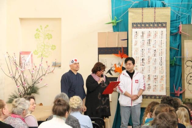 Po powitaniu gości przez Prezes Zarządu Oddziału Halina Chojnacka głos zabrał Dariusz Szpakowski,który przedstawił prezentację multimedialną dotyczącą kultury Japonii.