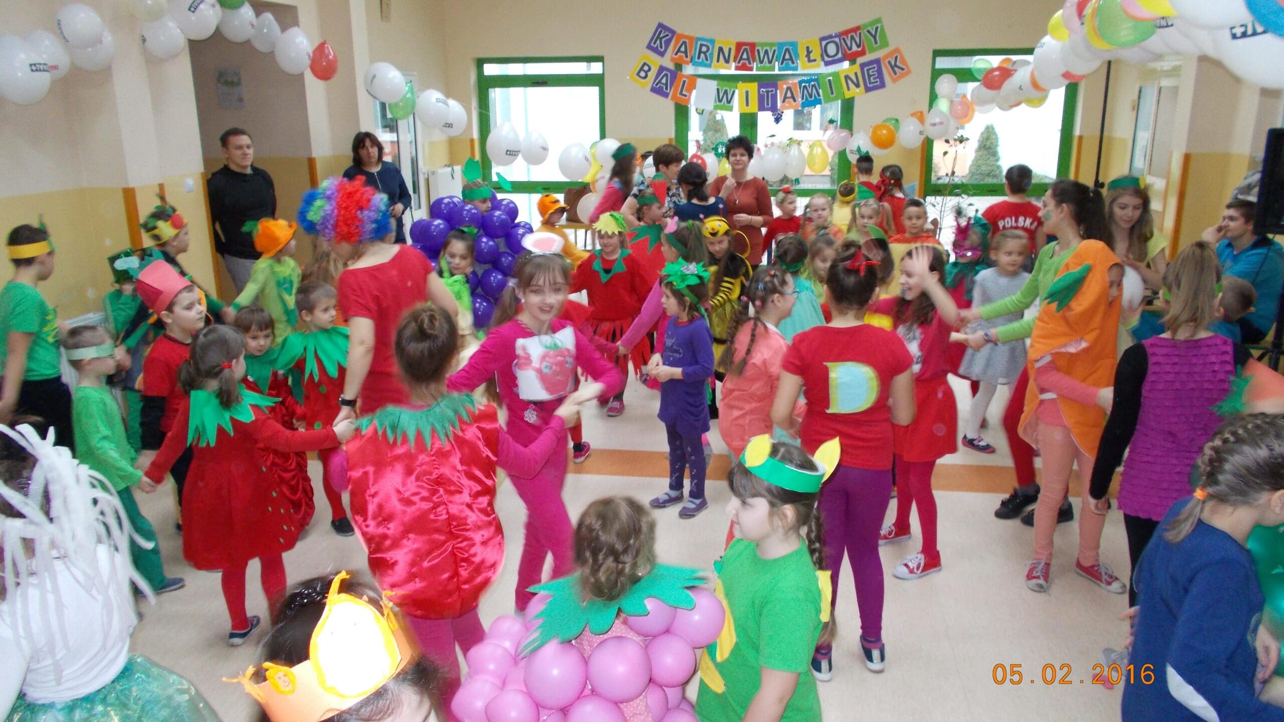 W organizację balu karnawałowego włączyli się uczniowie, nauczyciele, a także rodzice wychowanków. Na balu pojawiło się wiele witamin pod postacią owoców i warzyw.