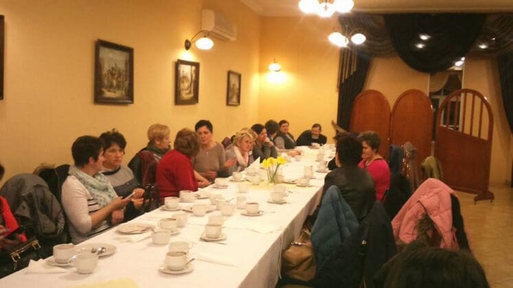 W wyjeździe uczestniczyło aż 61 osób. Przed sensem uczestnicy spotkali się na kawie i pysznej szarlotce w jednej z restauracji w Łęczycy.