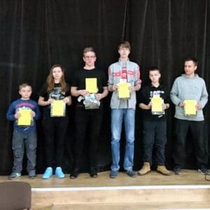 Laureaci otrzymali nagrody ufundowane przez DK w Niesułkowie: pendrivy, uchwyty do selfie, power banki.