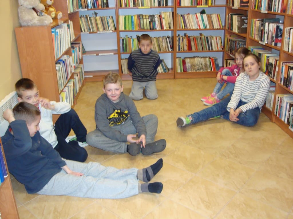 W kwietniu odbyły się także zajęcia biblioteczne. Pani Jolanta Krajewska z sokolnickiej biblioteki przeczytała dzieciom rosyjską bajkę pt. „Jarzębinka” Jakowa Tajca. Bajka ta uczy, że warto być dobrym i uczynnym. Po wysłuchaniu omówiono treść bajki, a następnie została wykonana praca plastyczna – pokolorowanie ilustracji przedstawiających treść wydarzeń. Po zakończeniu zajęć prace dzieci zostały wywieszone w bibliotece.