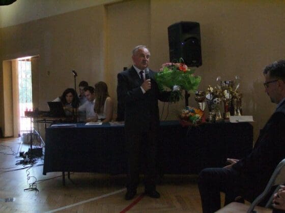Wiesław Stankowski – Sekretarz Powiatu Zgierskiego, w imieniu starosty zgierskiego Bogdana Jaroty, podczas uroczystości kończących ten rok szkolny, pogratulował dyrektor Annie Plaskocie i społeczności ozorkowskiego liceum tak licznych sukcesów w kończącym się roku szkolnym.