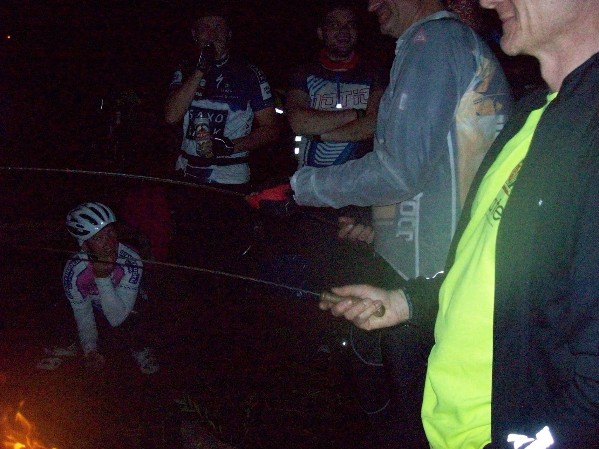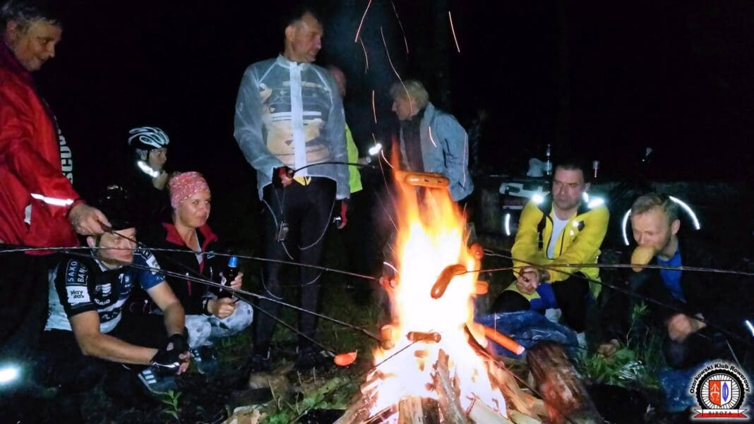 Tam na polance zorganizowane zostało wspólne ognisko. Mimo padającego deszczu udało się je rozpalić, a po kilkunastu minutach, kiedy przestało padać ogień zaczął mocniej płonąć i przy kiełbasce, ciepłych napojach oraz w miłej atmosferze uczestnicy spędzili prawie trzy godziny.