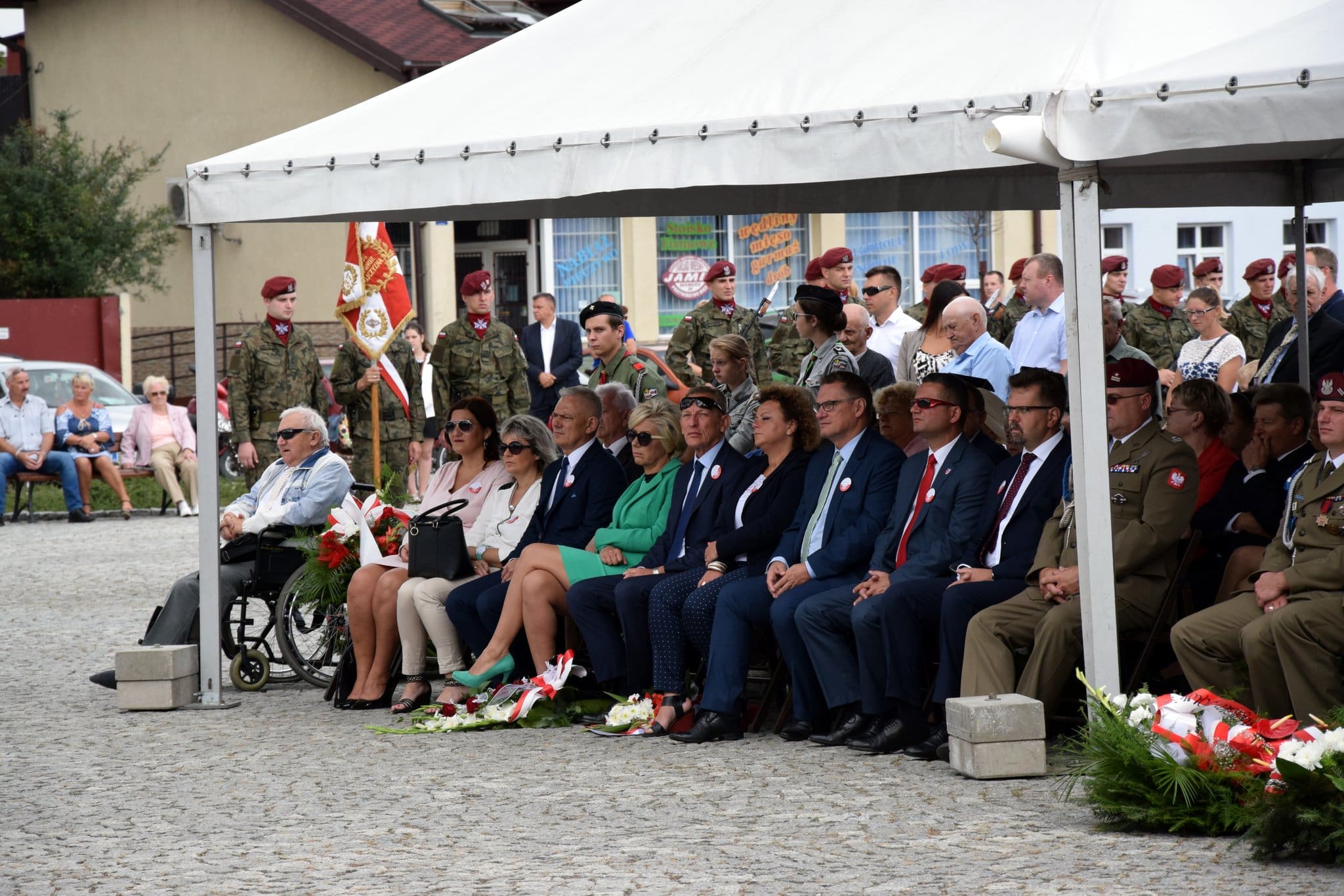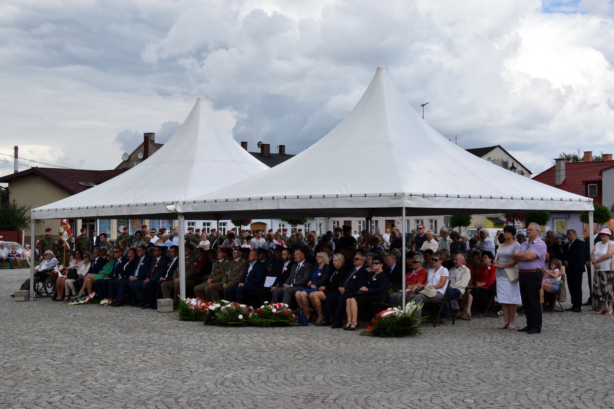 Po nabożeństwie i wystąpieniach, m.in. Burmistrza Jacka Sochy, delegacje złożyły kwiaty pod tablicą upamiętniającą Obrońców Ojczyzny w latach 1918-1920. Następnie odczytano Apel Poległych, po którym żołnierze oddali salwę honorową ku czci bohaterów i patriotów. Obchody Święta Wojska Polskiego zakończył przemarsz kompani honorowej żołnierzy z Leźnicy Wielkiej i przejazd Szwadronu Kolarzy Kawalerii im. 2 Pułku Szwoleżerów Rokitniańskich w Ozorkowie.