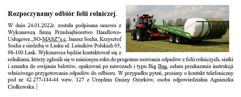 Strona głównaAktualnościGmina OzorkówRozpoczynamy odbiór folii rolniczej
