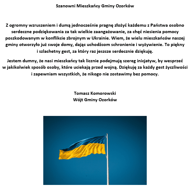 Strona głównaAktualnościGmina OzorkówPodziękowanie dla Mieszkańców Gminy Ozorków