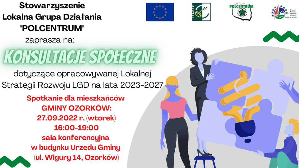 Już dziś w sali obrad Urzędu Gminy Ozorków w godzinach 16.00-19.00 odbędą się konsultacje społeczne dotyczące Lokalnej Strategii Rozwoju LGD na lata 2023-2027 organizowane przez Lokalną Grupę Działania Polcentrum. Serdecznie zapraszamy!