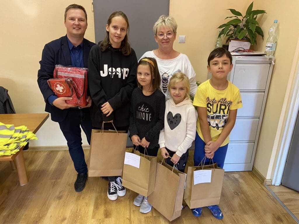 Wszystkie placówki otrzymały kamizelki odblaskowe dla dzieci i młodzieży, apteczki turystyczne a przedszkole także odblaskowe maskotki.
