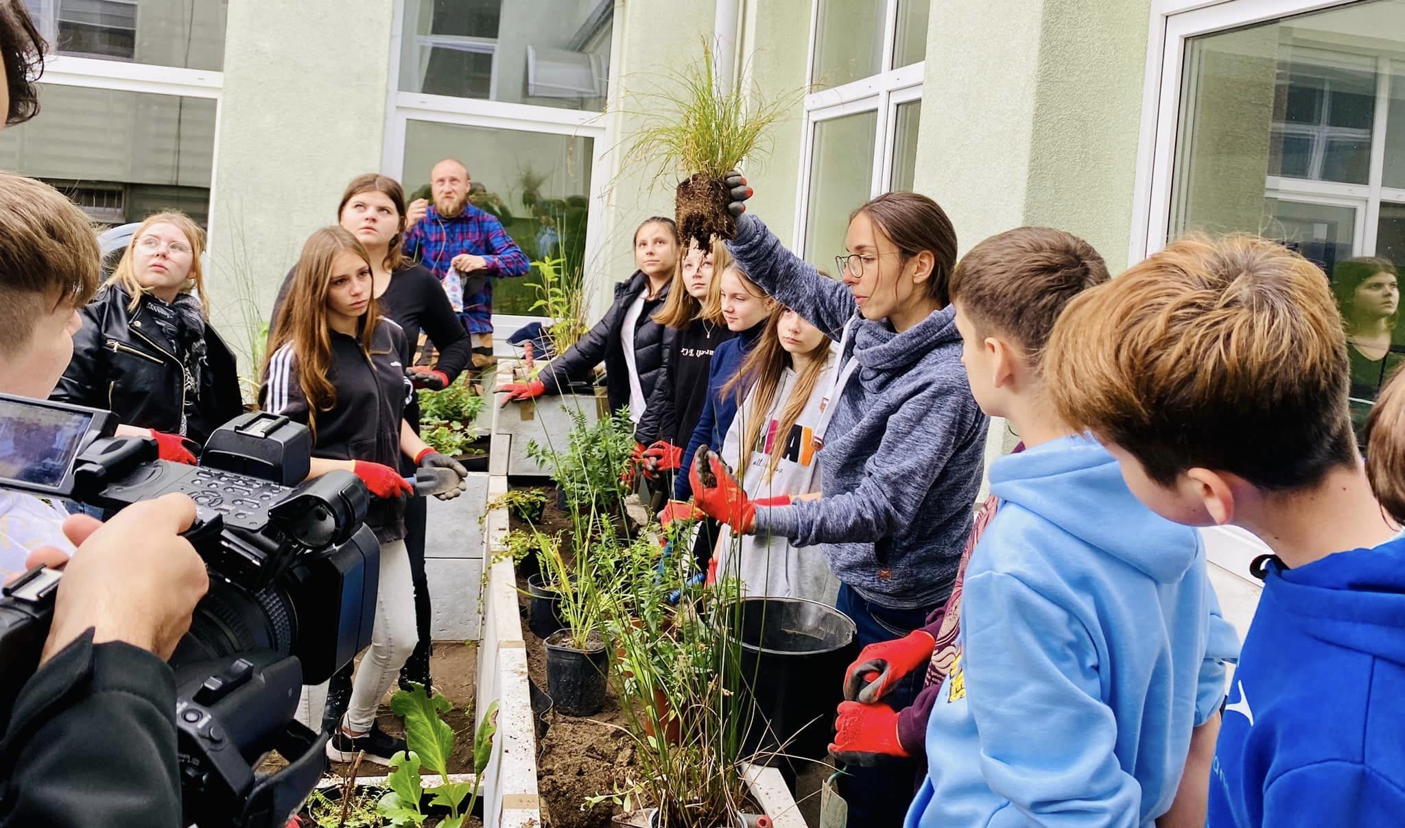 Dziś uczniowie ze Szkoły Podstawowej nr 2 w Ozorkowie przy pomocy specjalistów od projektowania zieleni zakładali deszczowy ogród na przyszkolnym terenie w ramach projektu „Powstrzymać suszę”.