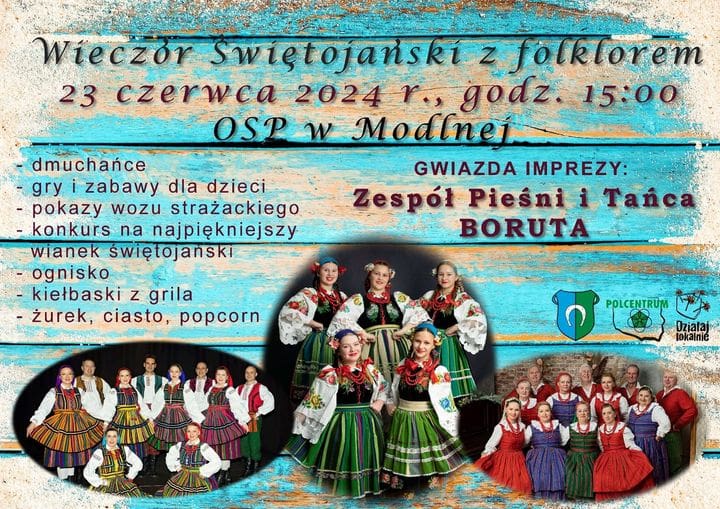 Godzinę później (14.00) na terenie przy świetlicy wiejskiej w Helenowie startuje piknik na rozpoczęcie wakacji, a o godzinie 15.00 w Modlnej odbędzie się Wieczór Świętojański z folklorem. Gwiazdą imprezy będzie Zespół Pieśni i Tańca BORUTA!