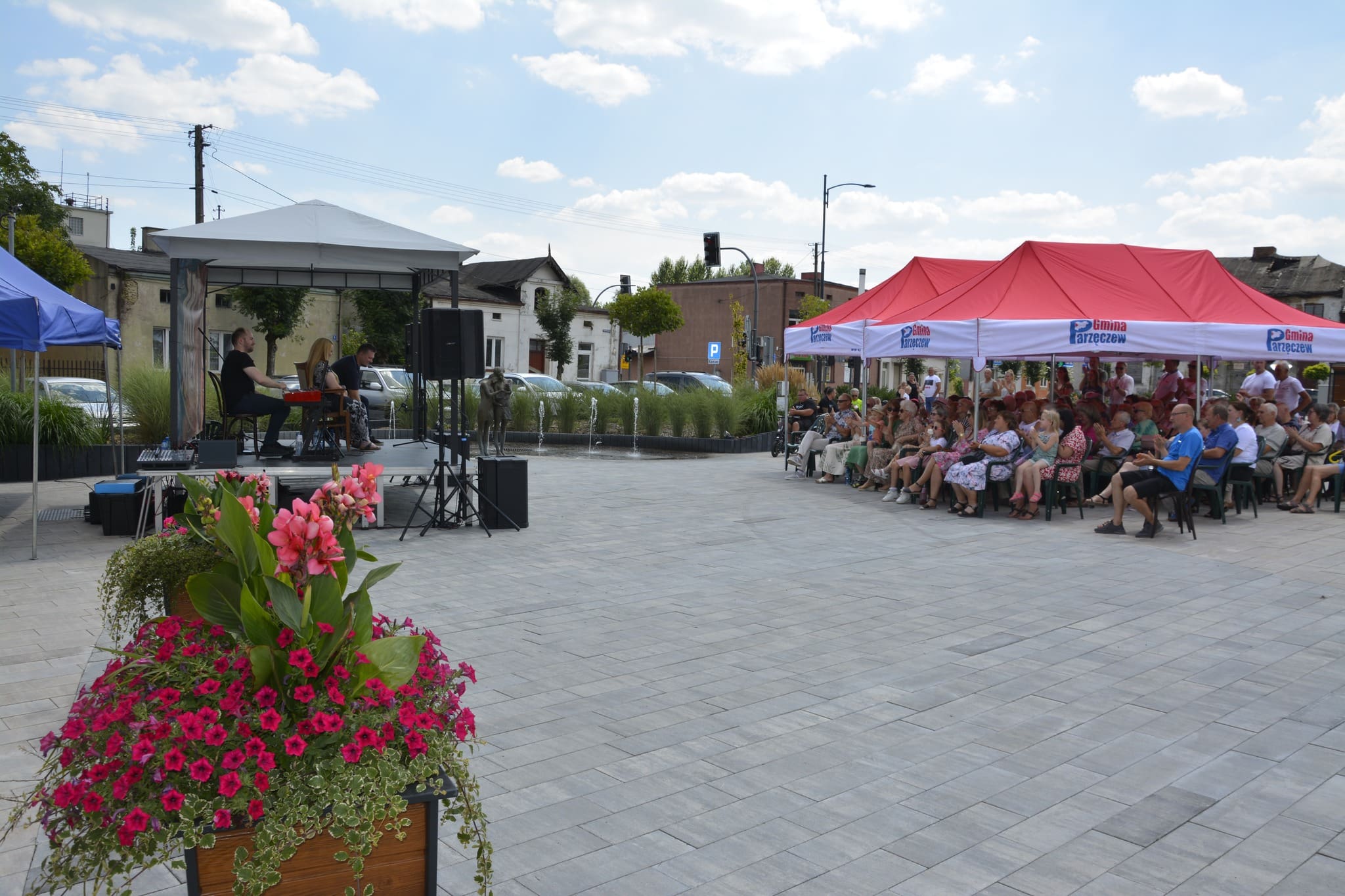 Za nami koncert Pauliny i Bartka Gruszeckich na parzęczewskim rynku. Artyści są muzycznym małżeństwem, znanym z programów The Voice of Poland oraz Śpiewajmy Razem All Together Now, w którym doszli do finału. Na swoim koncie mają wiele koncertów w towarzystwie najwybitniejszych polskich artystów. Muzykom akompaniował Marcin Jagiełło – pianista, klawiszowiec, muzyk sesyjny i producent. Mimo upału publiczność dopisała. Panował beztroski wakacyjny nastrój, którego mogliśmy w pełni doświadczyć dzięki wykonawcom z ich pasją, oddaniem oraz wyjątkową artystyczną i życiową wrażliwością. Dziękujemy za wspólną zabawę i zachęcamy do udziału w naszych kolejnych imprezach.
