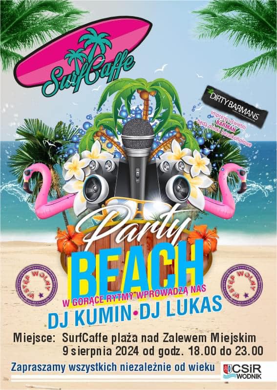 9 sierpnia Party Beach nad Zalewem Miejskim, czyli impreza przy gorących rytmach, na którą ponownie zapraszają mieszkańców SurfCafe i CSiR Wodnik.