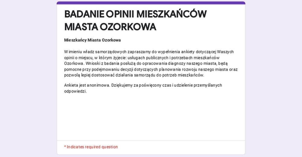 BADANIE OPINII MIESZKAŃCÓW MIASTA OZORKOWA