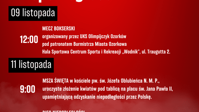 Strona głównaAktualnościMiasto OzorkówMiejskie obchody Święta Odzyskania Niepodległości – program