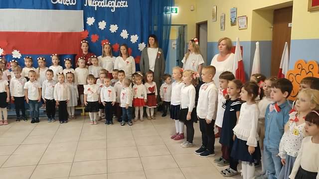 Dziś o godz. 11.11. przedszkolaki z Przedszkola Miejskiego nr 5 uroczyście odśpiewały Hymn Polski z okazji zbliżającego się Święta Niepodległości