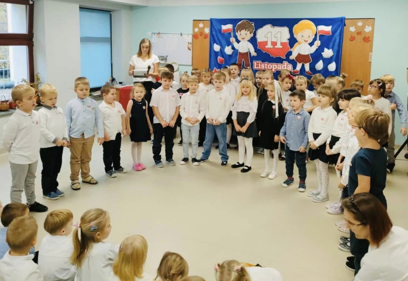 8 listopada w Przedszkolu Miejskim nr 1 w Ozorkowie odbyła się uroczystość z okazji Święta Odzyskania Niepodległości z udziałem dzieci ze wszystkich grup przedszkolnych, personelu i zaproszonych rodziców. Dzieci recytowały wzniosłe, patriotyczne wiersze, zaśpiewały piosenkę „Co to jest niepodległość?”, a na zakończenie zachwyciły publiczność tańcem do utworu „Barwy narodowe Ojczyzny naszej”. Nie mogło zabraknąć uroczystego odśpiewania Hymnu Państwowego oraz recytacji „Katechizmu Polskiego Dziecka”. To niezwykle ważne, by kształtować postawę szacunku do historii naszego kraju, symboli narodowych oraz właściwego zachowania podczas uroczystości już od najmłodszych lat. Na zakończenie dzieci wraz z ciociami zostały zaproszone na grupową sesję zdjęciową na tle wyjątkowej dekoracji, a następnie na pyszną, patriotyczną niespodziankę w postaci deserku w kolorach flagi naszej Ojczyzny. PM1