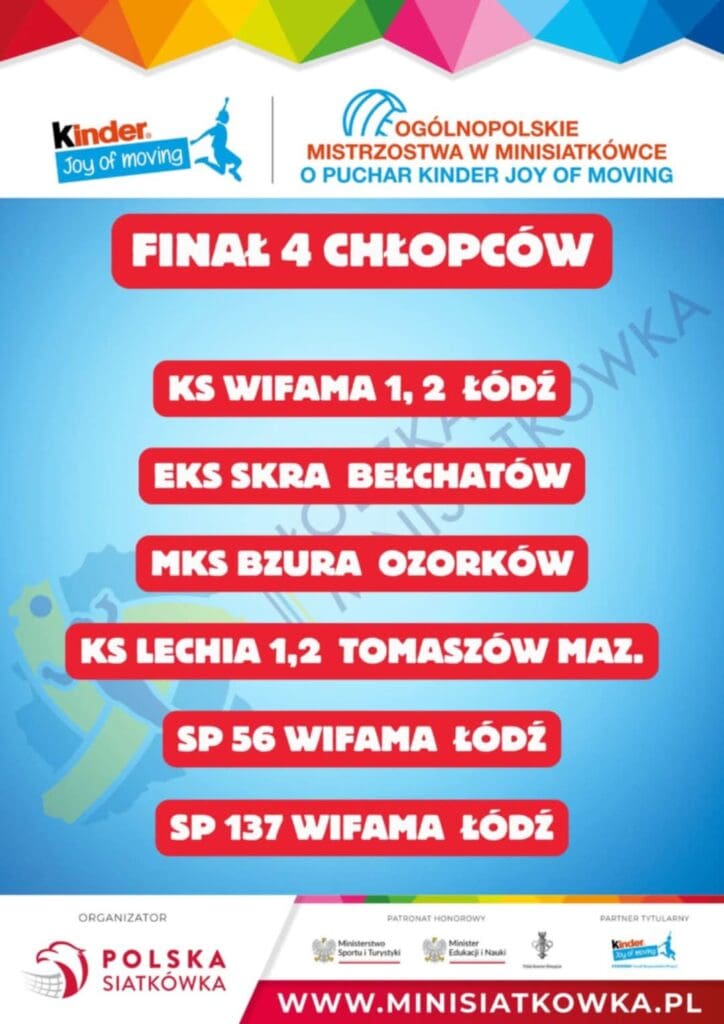 Dzisiaj, 13 maja 2025 roku, hala sportowa MKS Bzura Ozorków przy ulicy Traugutta 2 stanie się centrum siatkarskich emocji. Wielki finał wojewódzki prestiżowego turnieju Kinder Joy of Moving w kategoriach „trójek” i „czwórek” chłopców zgromadzi osiem najlepszych drużyn z województwa łódzkiego. Młodzi sportowcy zmierzą się o trzy miejsca premiowane awansem do Ogólnopolskich Mistrzostw w Minisiatkówce, które odbędą się w katowickim Spodku pod koniec czerwca.